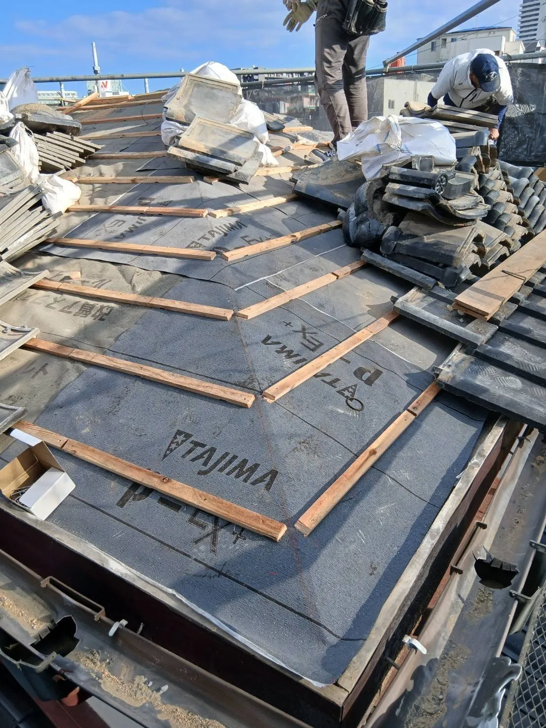 今回の工事では、経年劣化により傷んでいたルーフィングを全面的に張り替え、今後の雨漏りリスクをしっかりと防止。